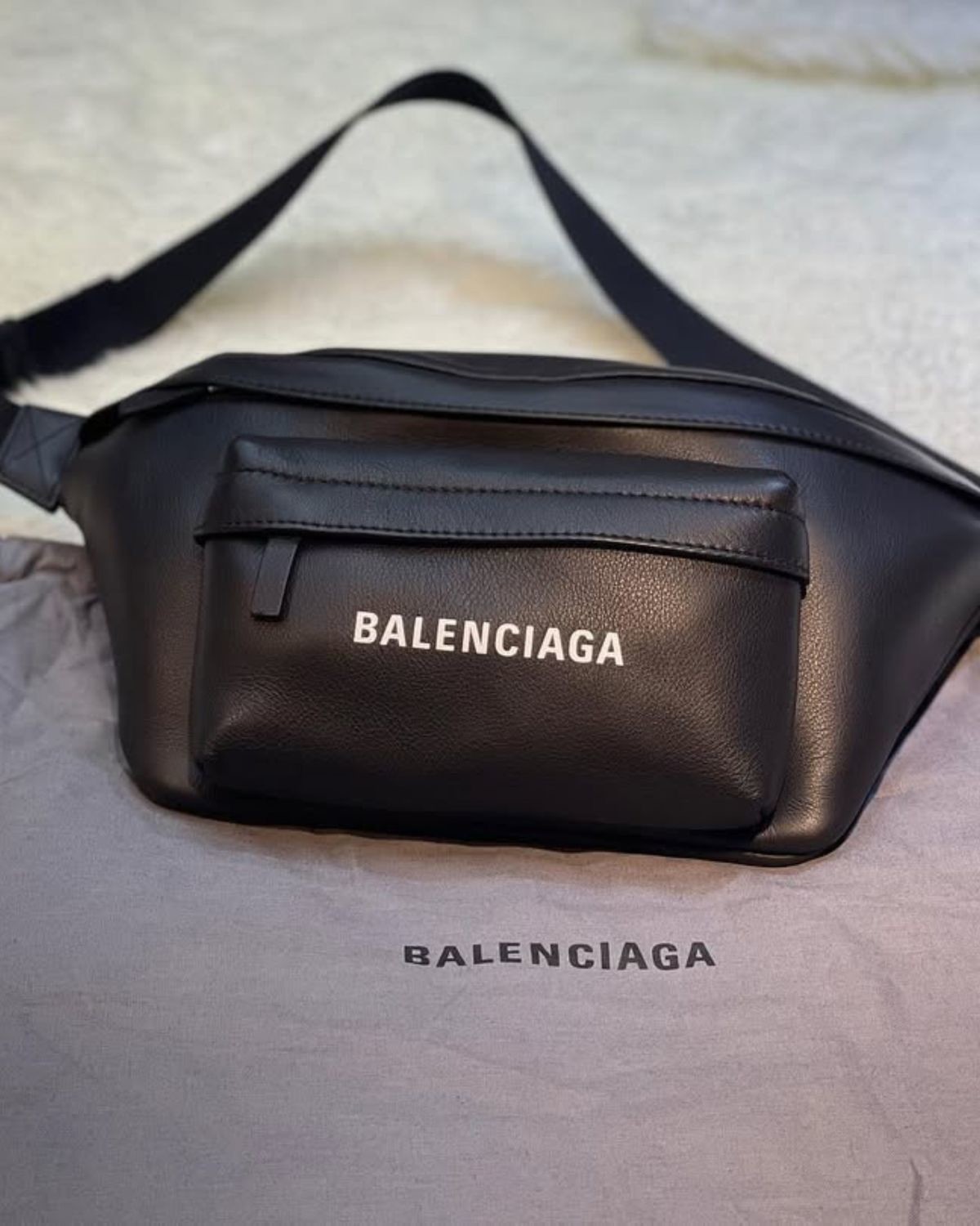 BALENCIAGA-經典EVERYDAY系列品牌字母LOGO烙印小牛皮腰包(需預購)