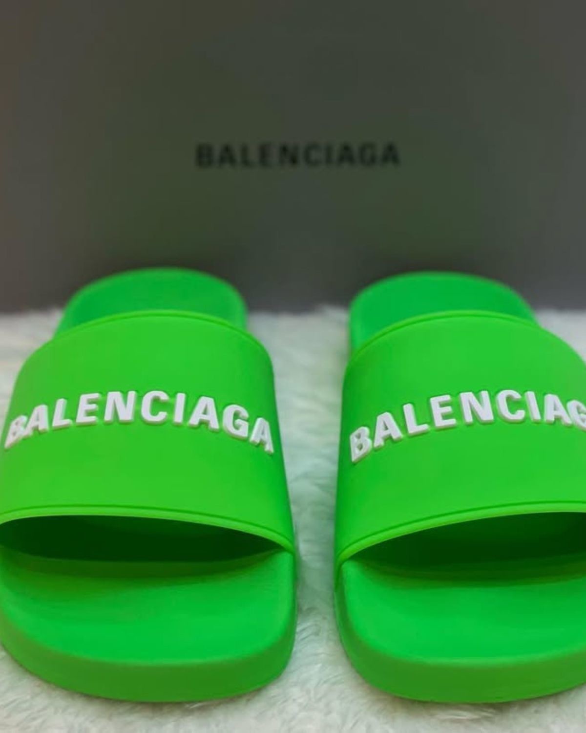BALENCIAGA- 螢光綠立體字母設計拖鞋(需預購)
