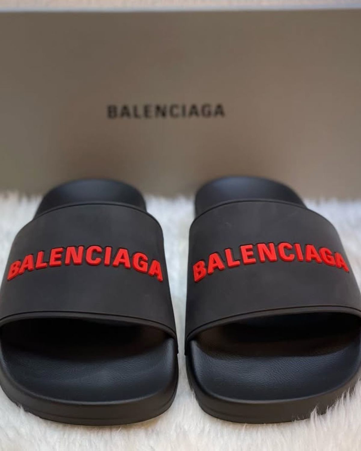 BALENCIAGA- 黑紅立體字母設計拖鞋(需預購)