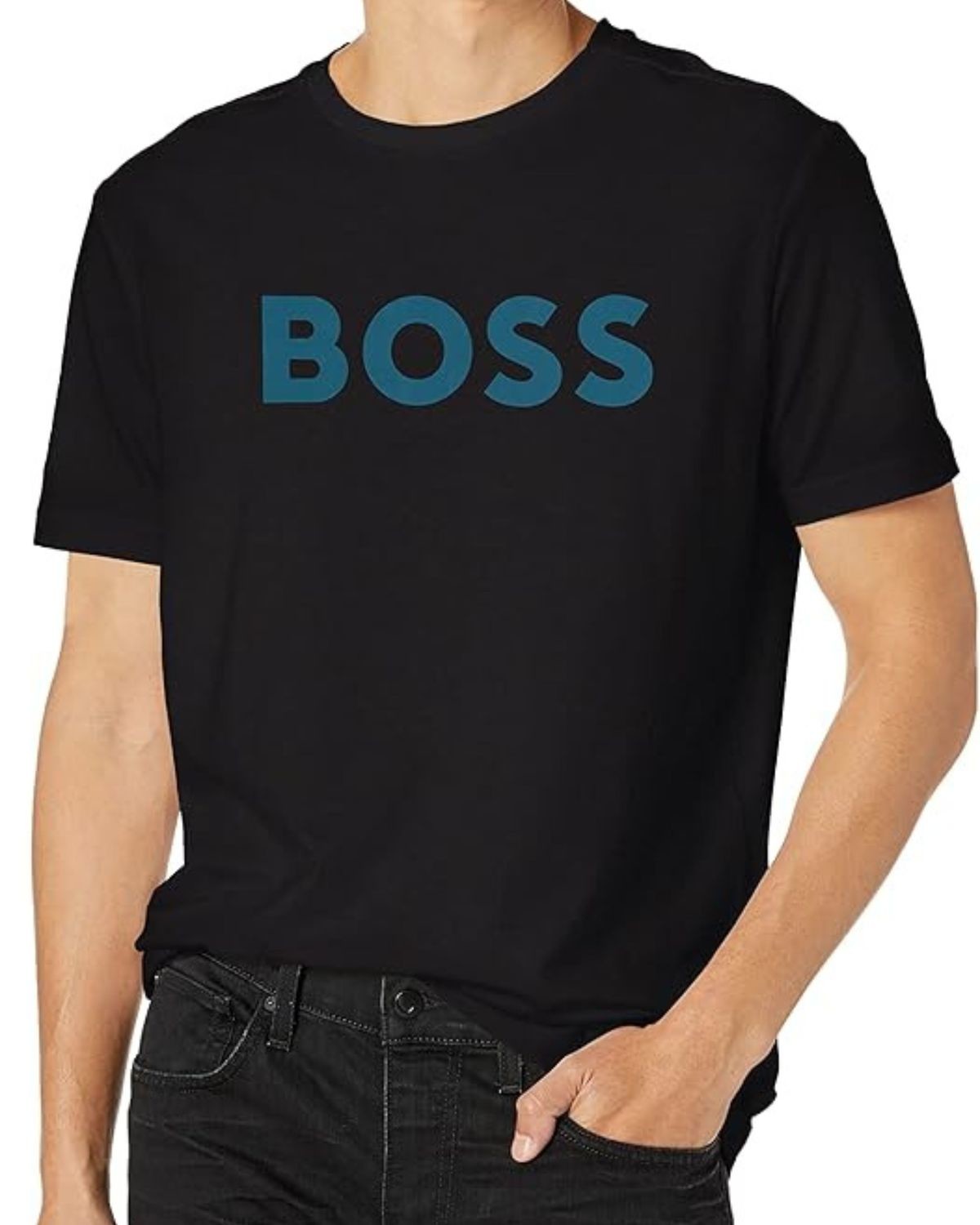 BOSS-綠色文字LOGO深藍 T恤