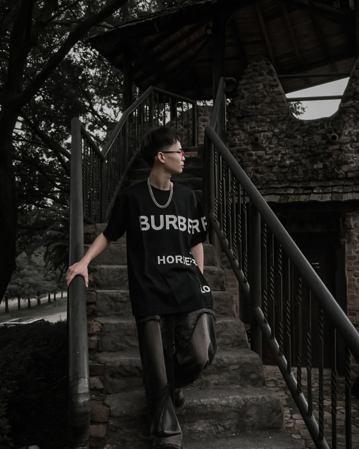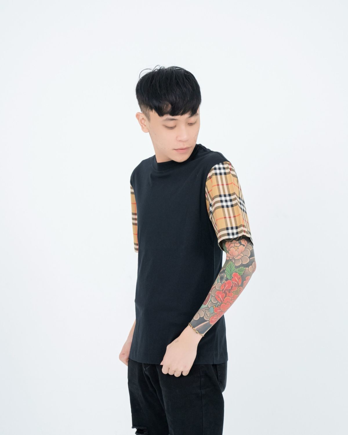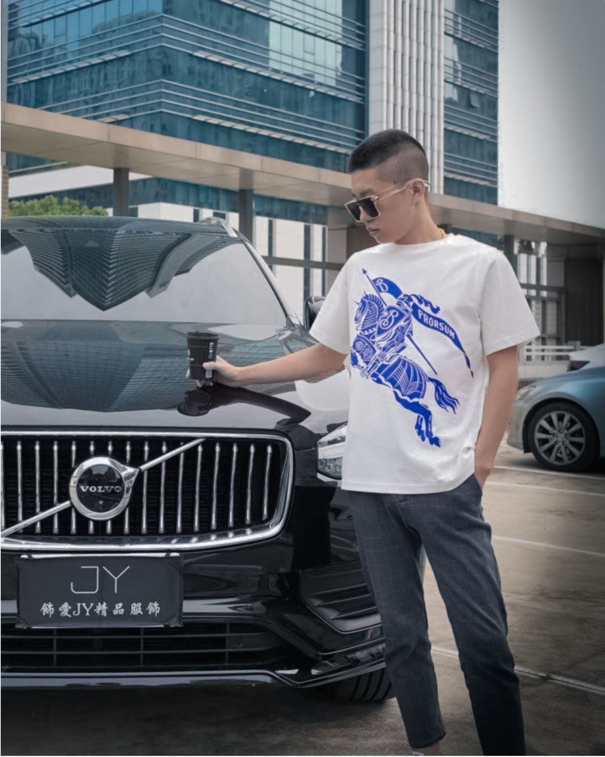 BURBERRY- 新款側邊格紋黑色T恤(需預購)