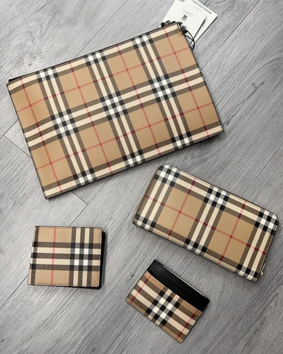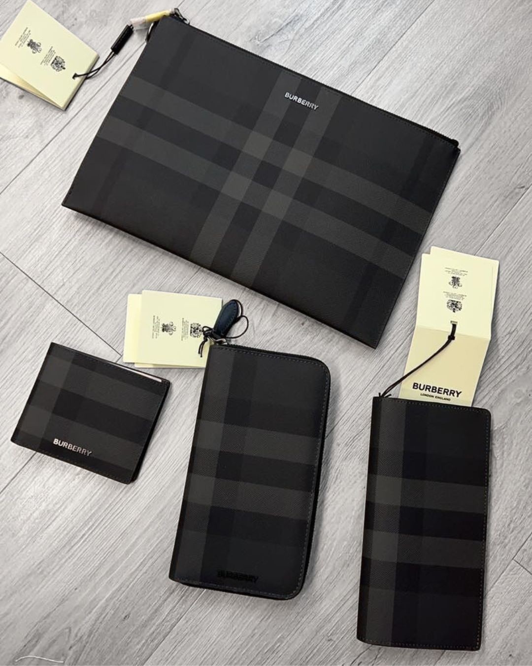BURBERRY-經典黑碳格紋零錢袋短夾(需預購)