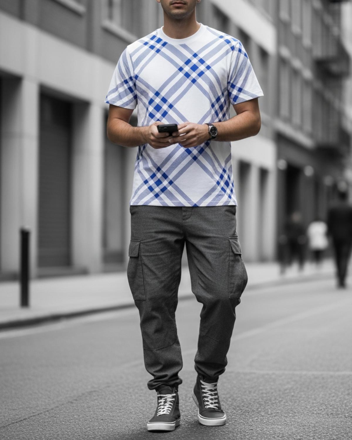 BURBERRY-經典格紋 印花棉質T恤 黑