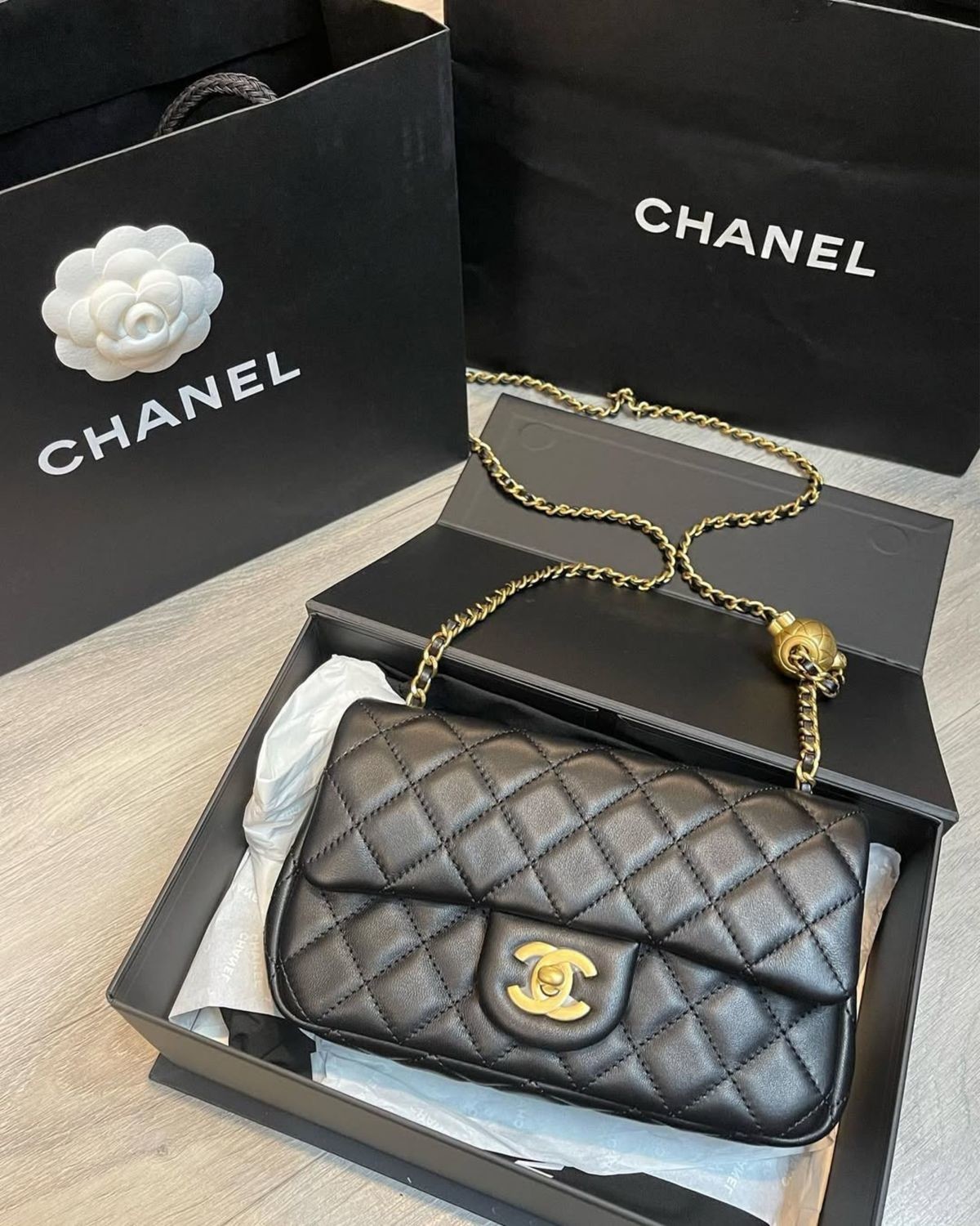 CHANEL-黑色羊皮金球 WOC(需預購)