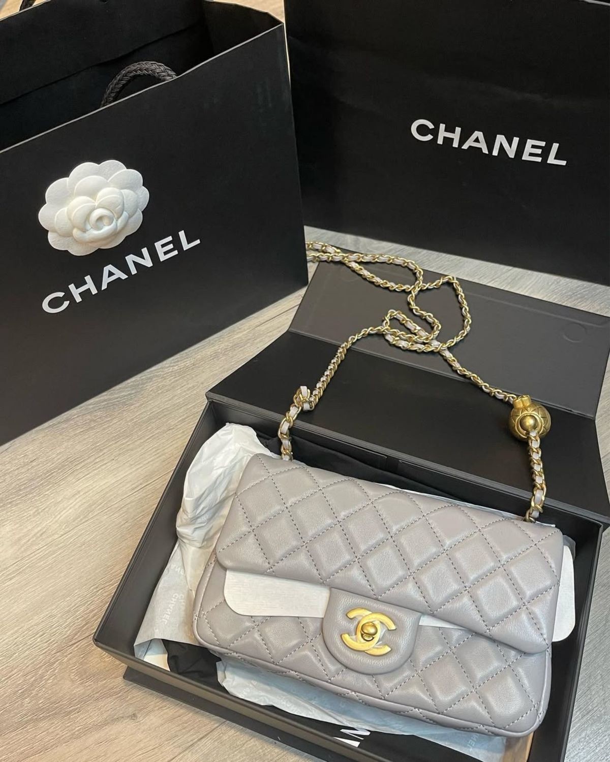 CHANEL-金球 灰色羊皮金釦 CF20(需預購)