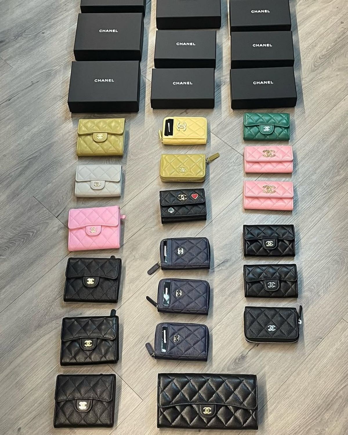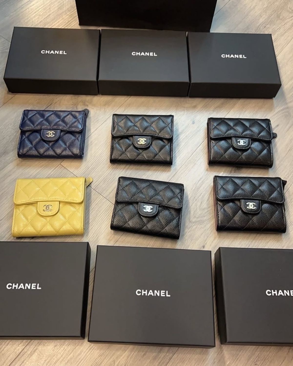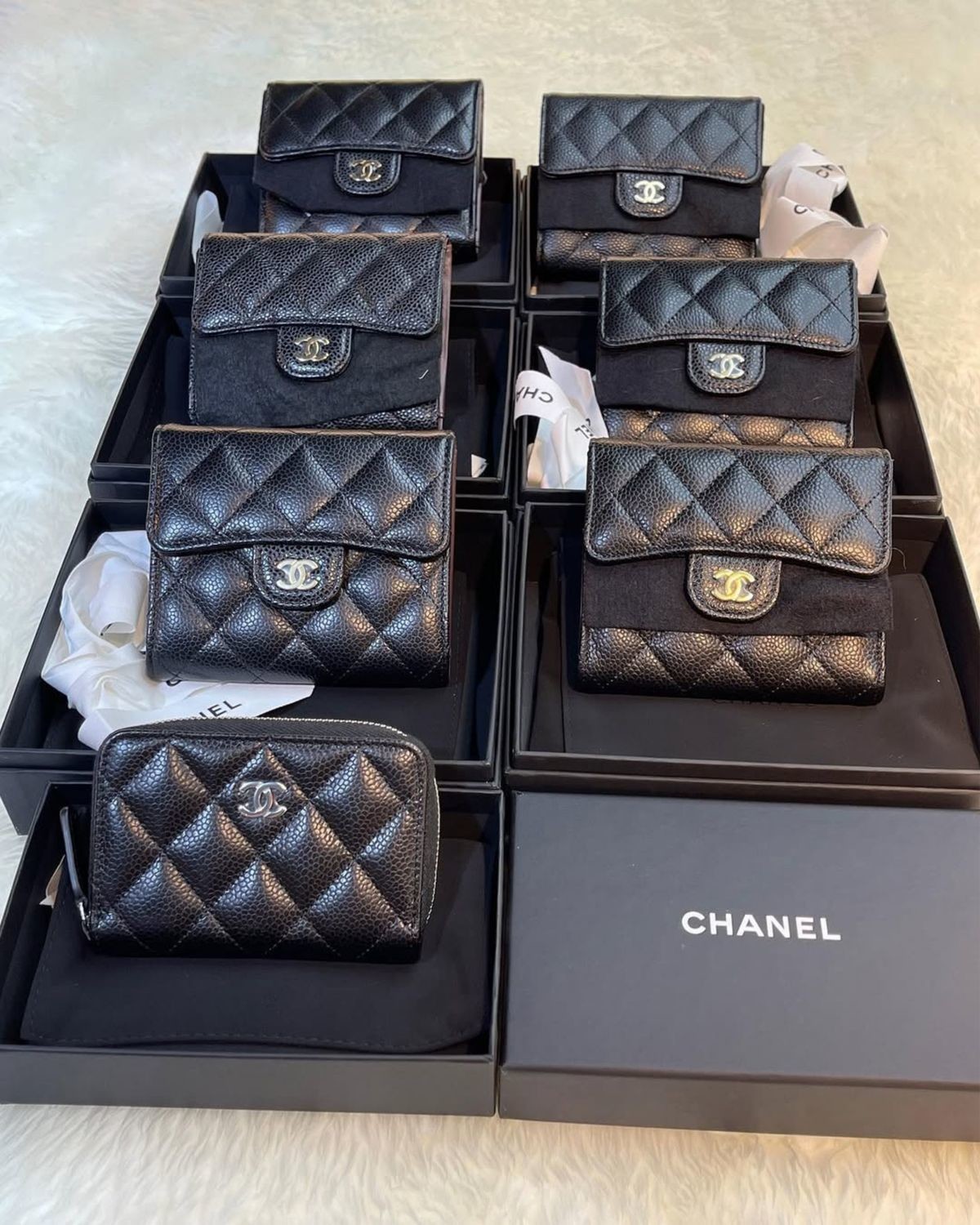 CHANEL-經典雙C淡金釦荔枝牛皮短夾(需預購)