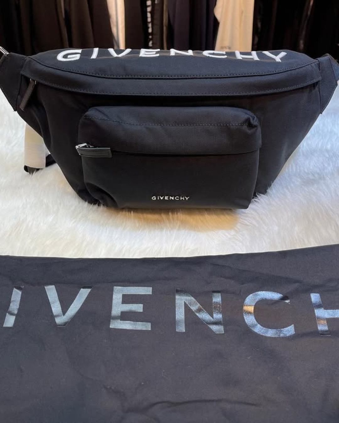 GIVENCHY-黑色字母刺繡斜肩背/腰包(黑色)(需預購)