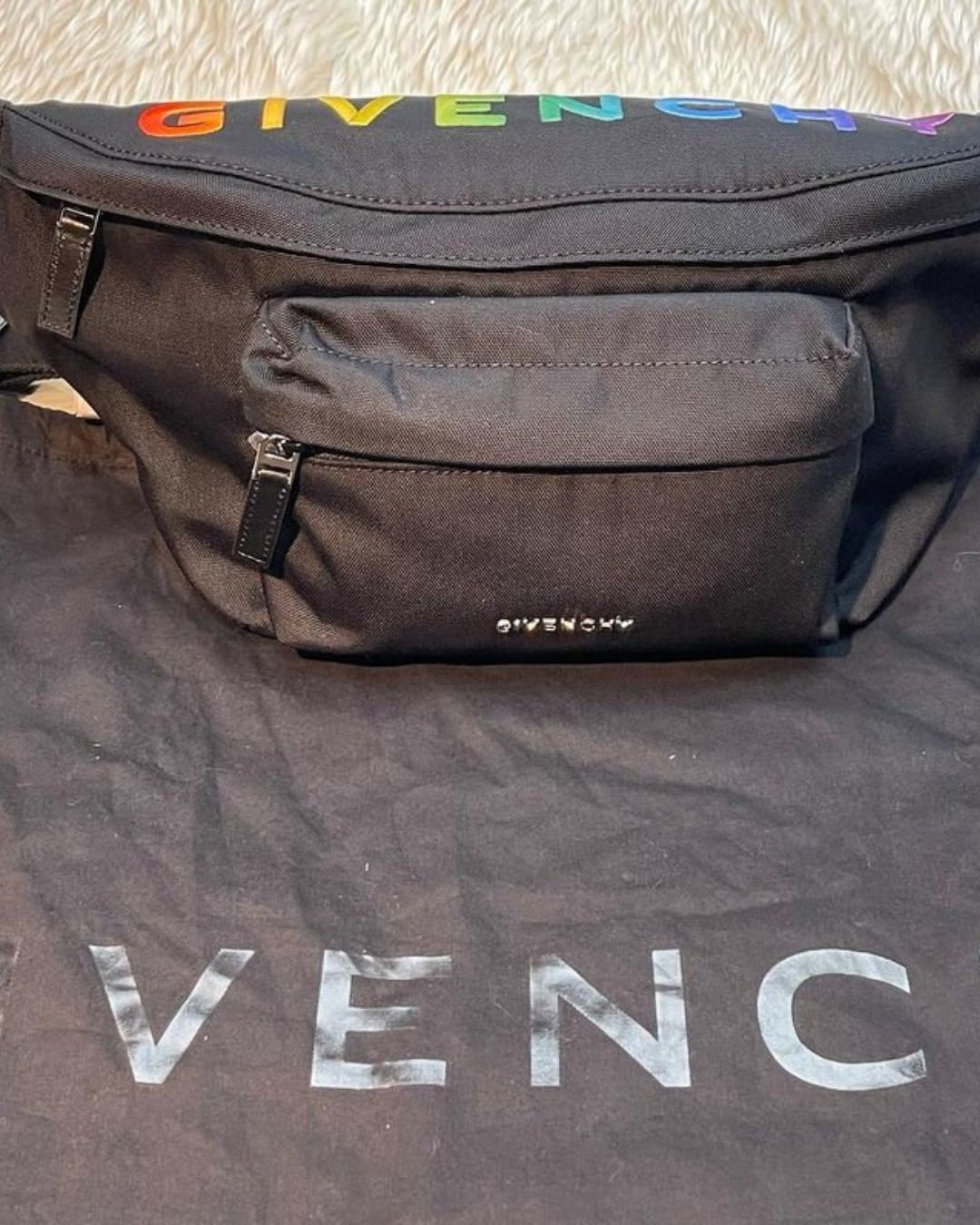 GIVENCHY-多彩漸層字母刺繡斜肩背/腰包(黑色)(需預購)