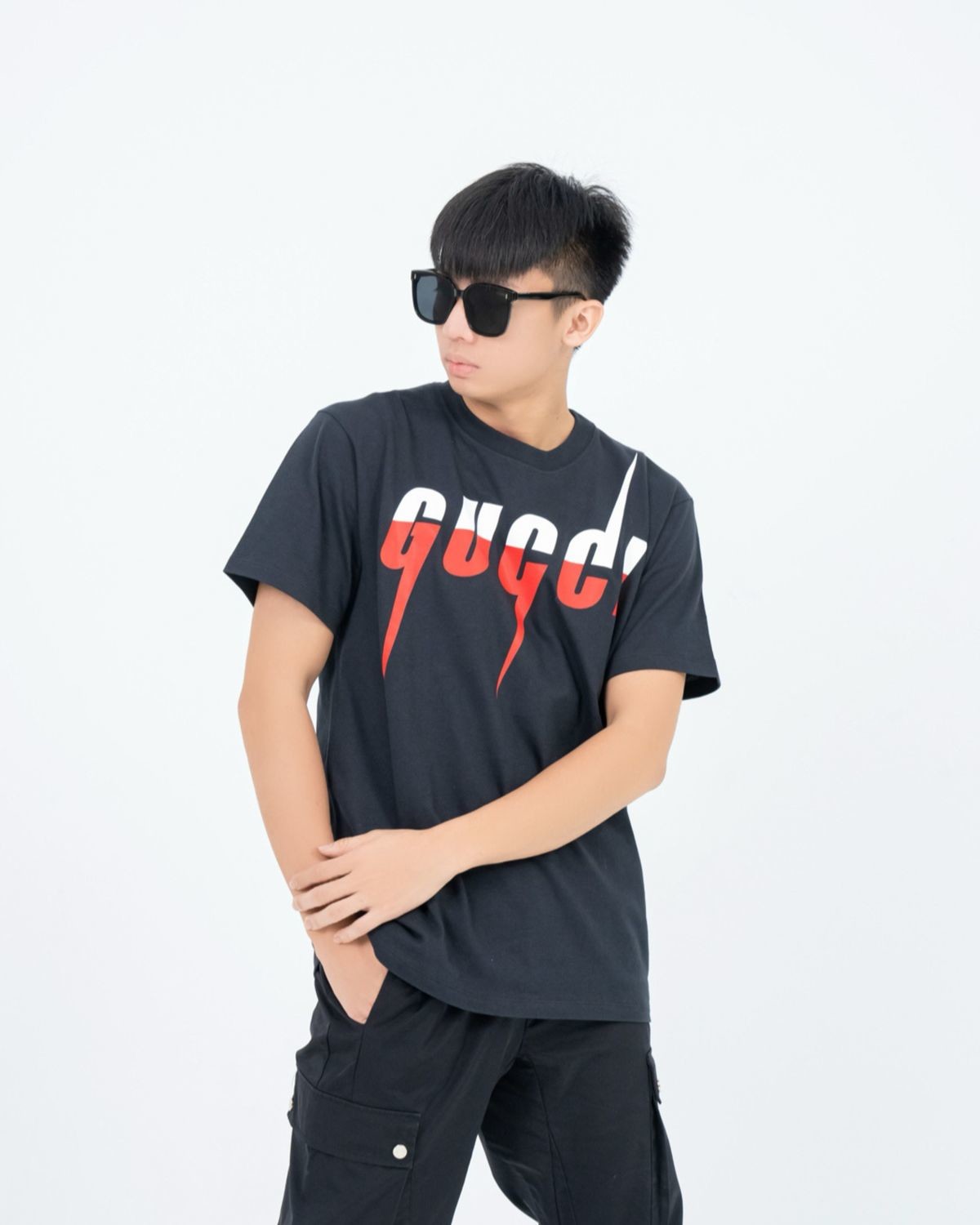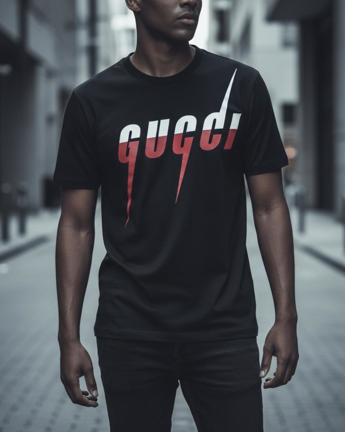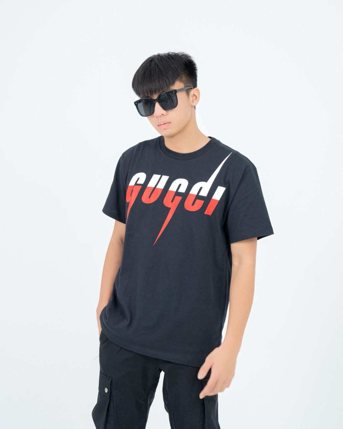 GUCCI-新款白紅徽標刀片印花設計T恤