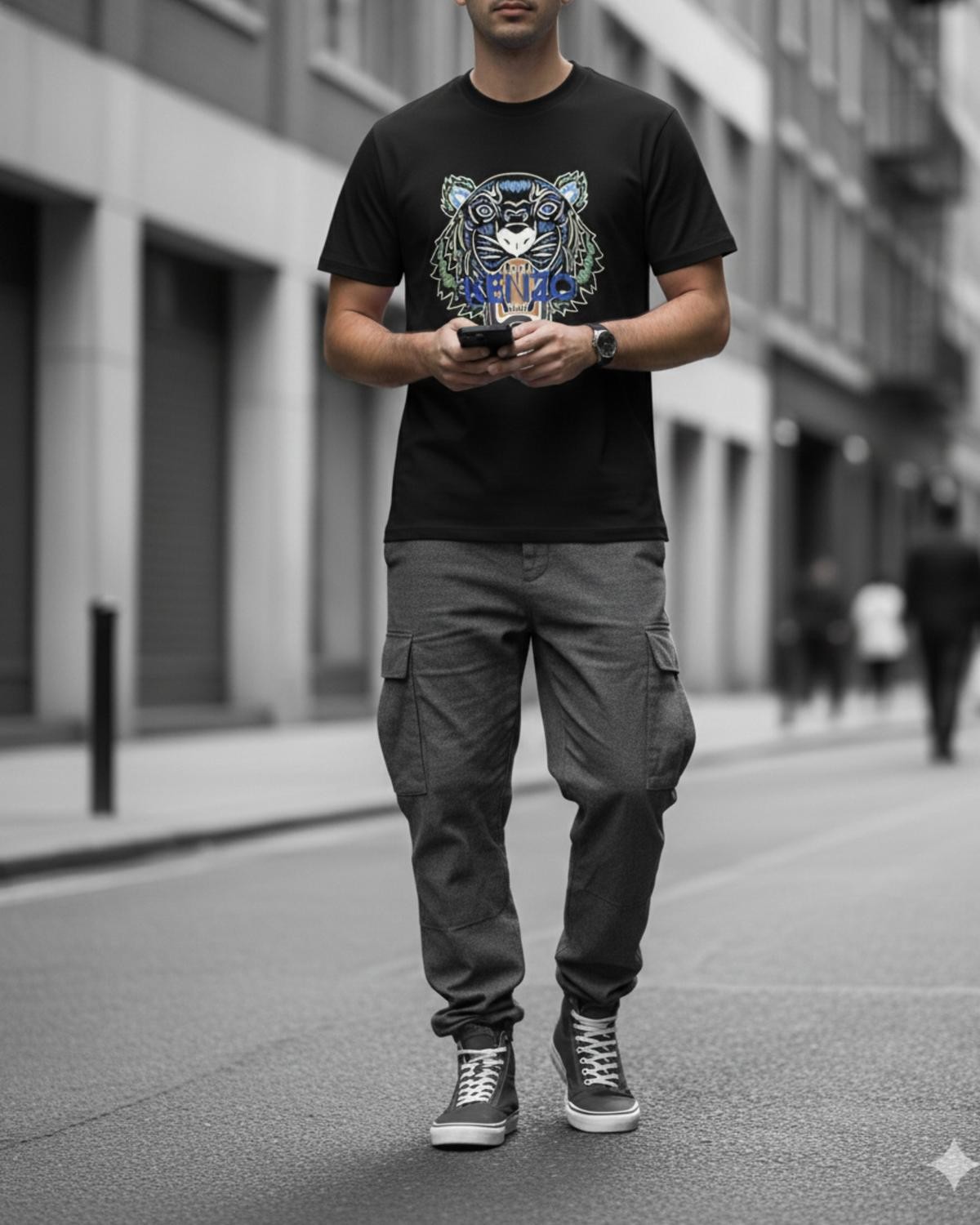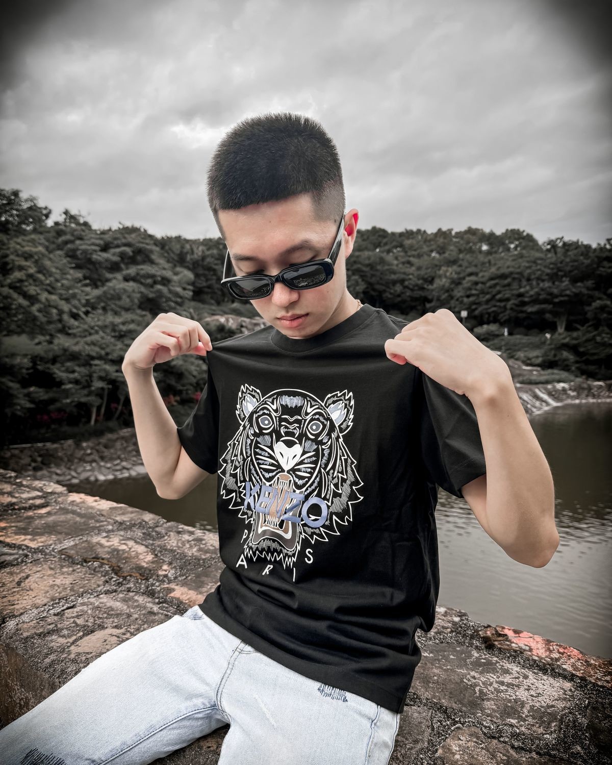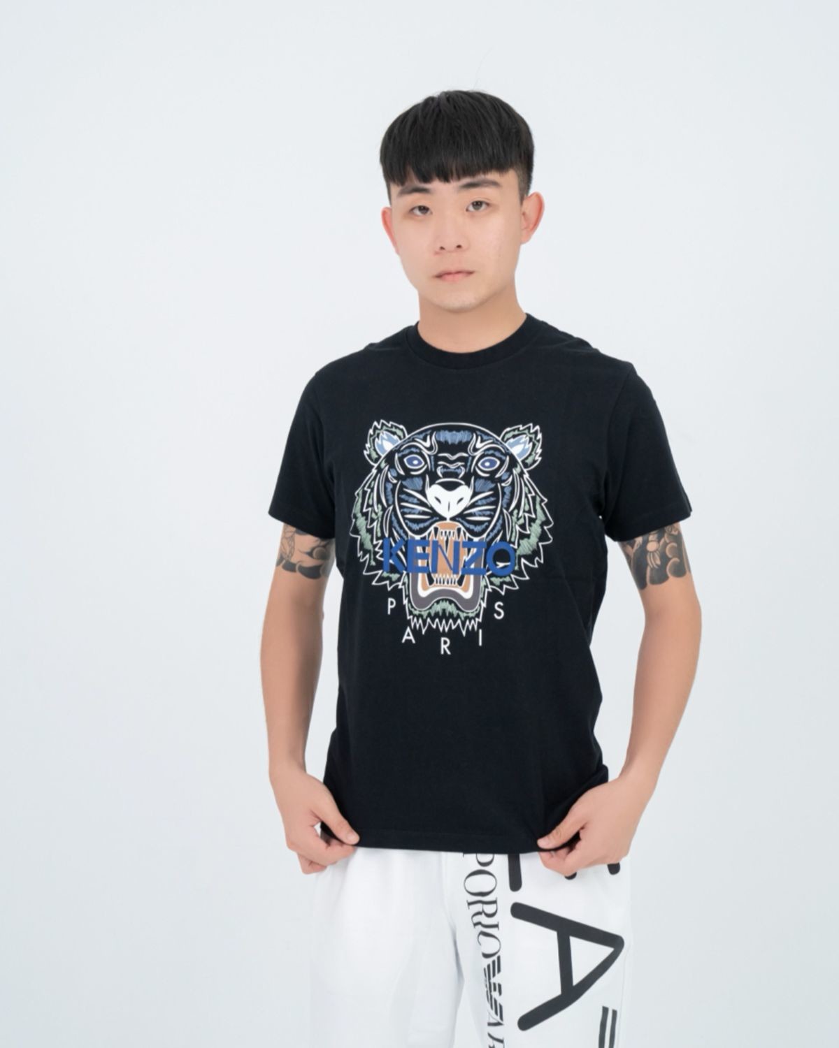 KENZO-新款上市藍綠虎頭印花LOGOT恤