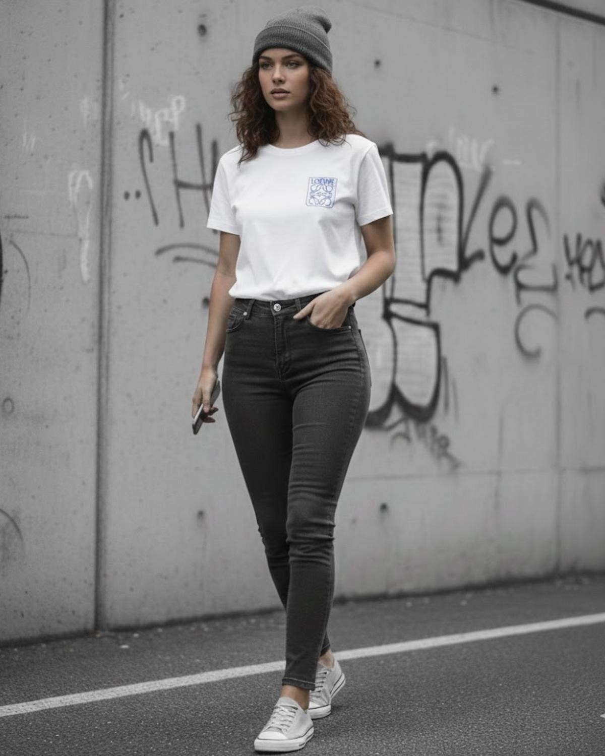 LOEWE-ANAGRAM 棉質刺繡小LOGO T恤 白