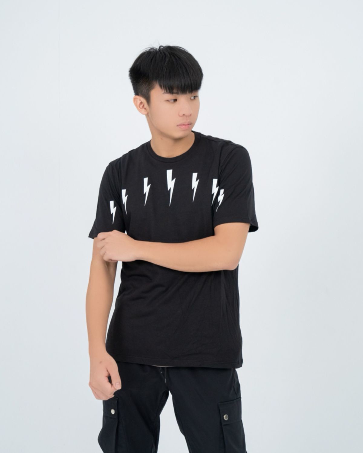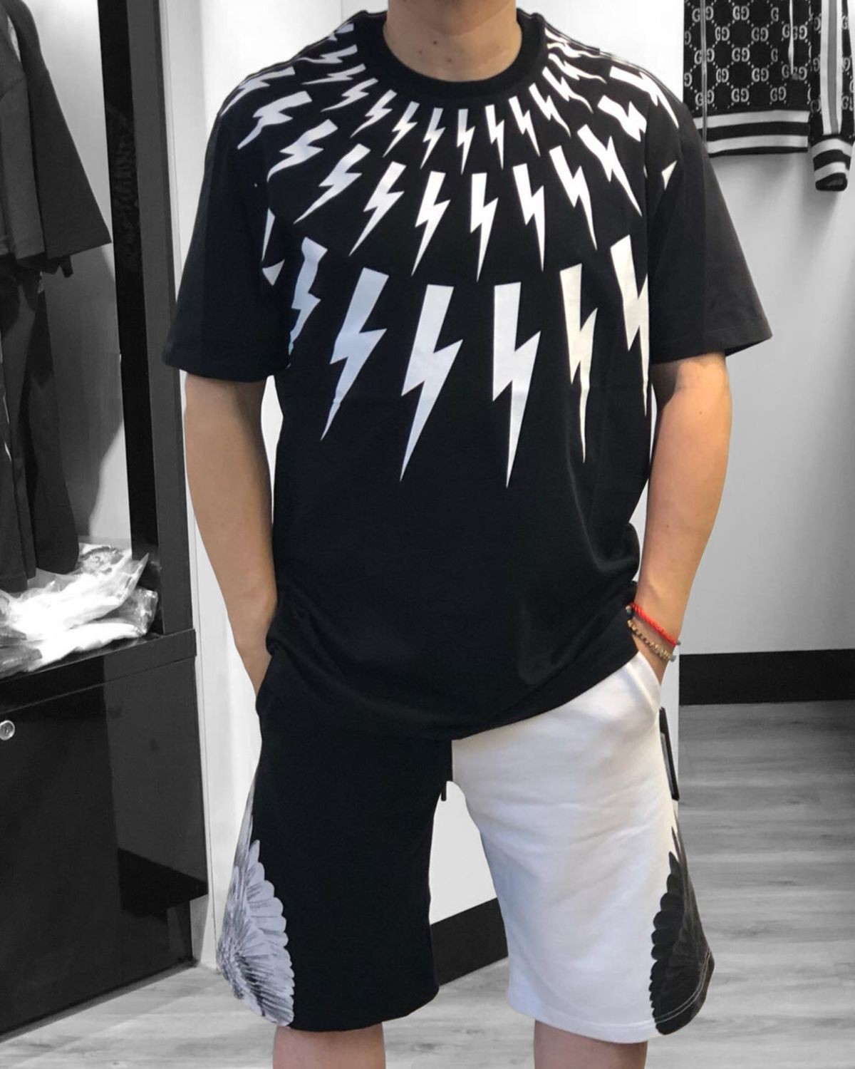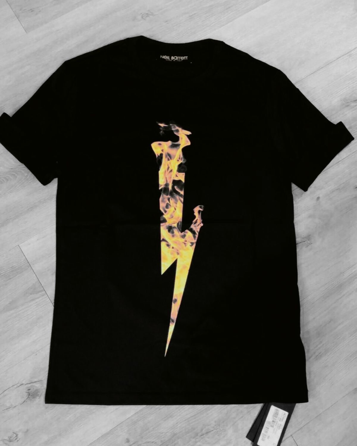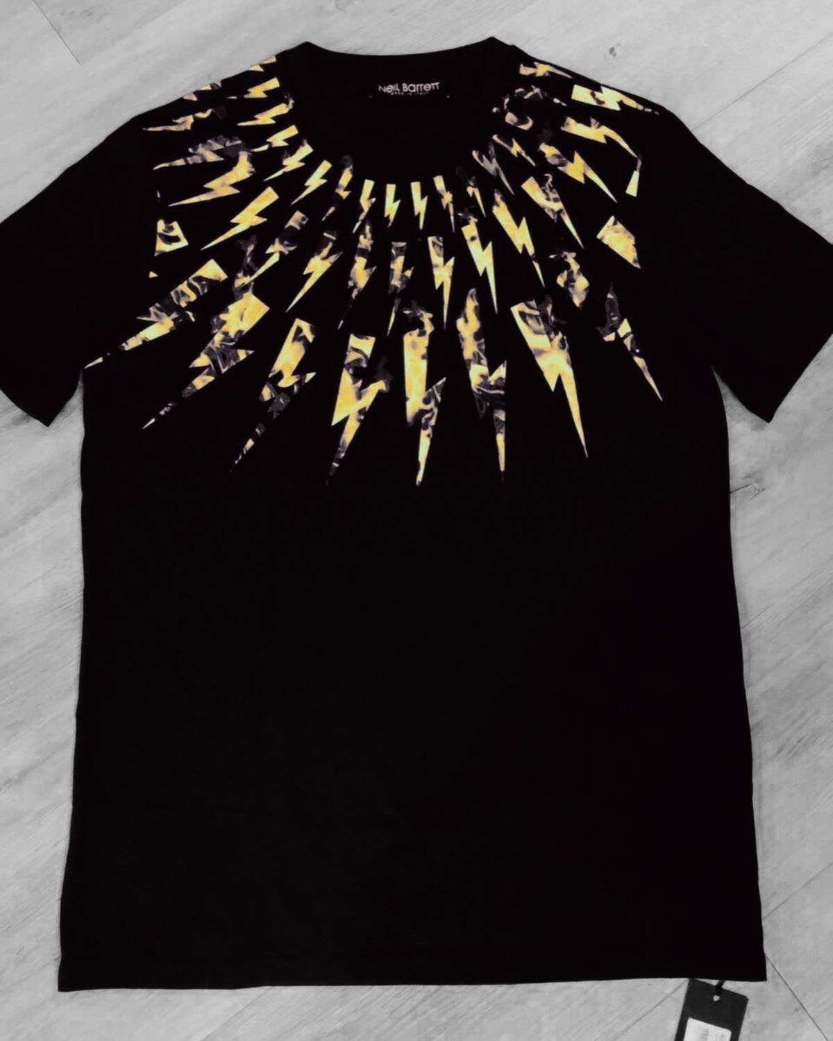 NEIL BARRETT-滿版黑橘閃電印花 T恤