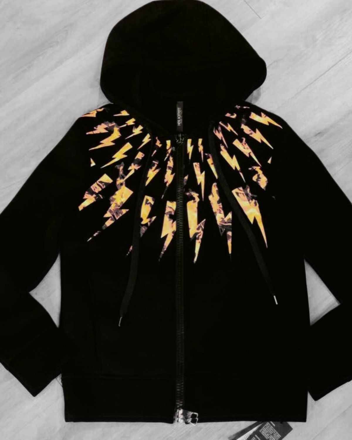 NEIL BARRETT-滿版黑橘閃電印花 外套