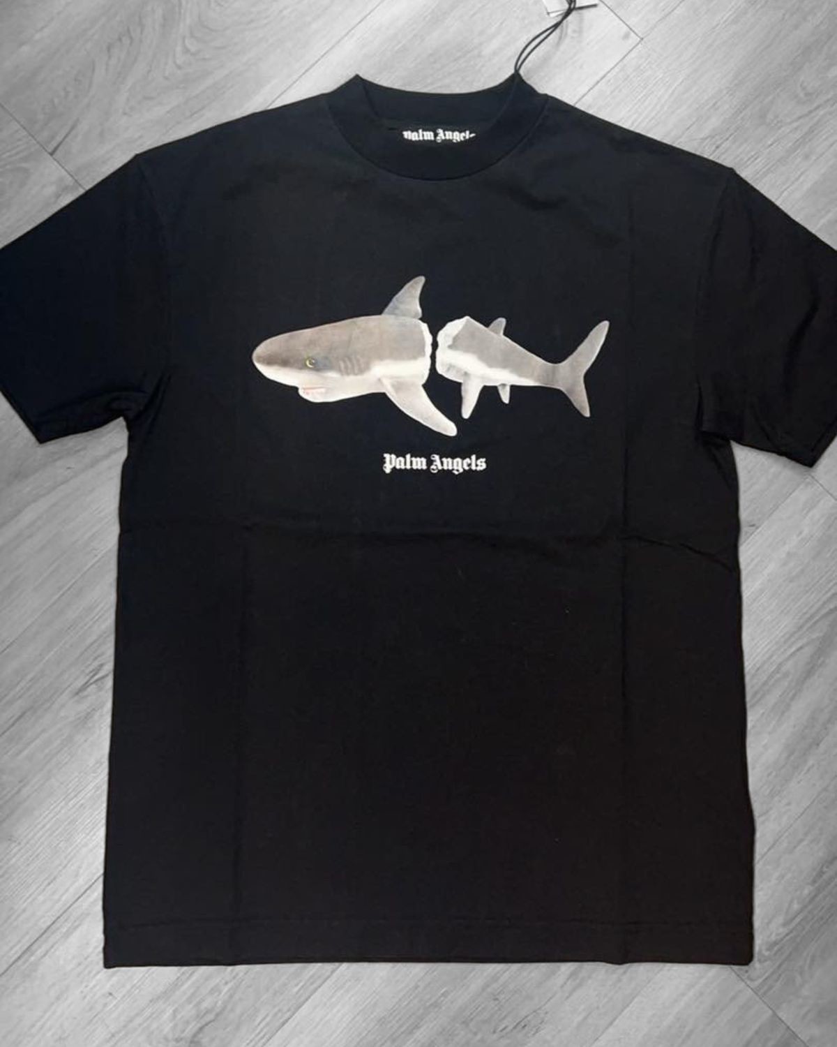 PALM ANGELS-黑色棉質斷頭鯊印花 T恤
