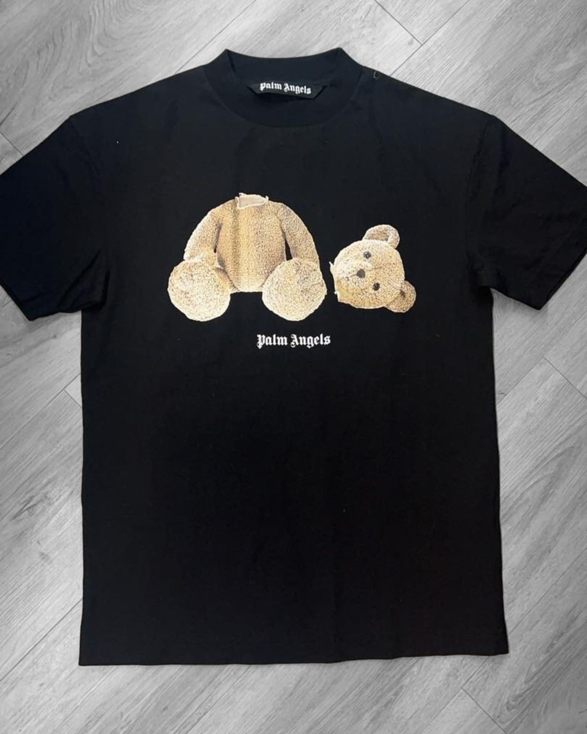 PALM ANGELS-黑色棉質斷頭熊印花 T恤