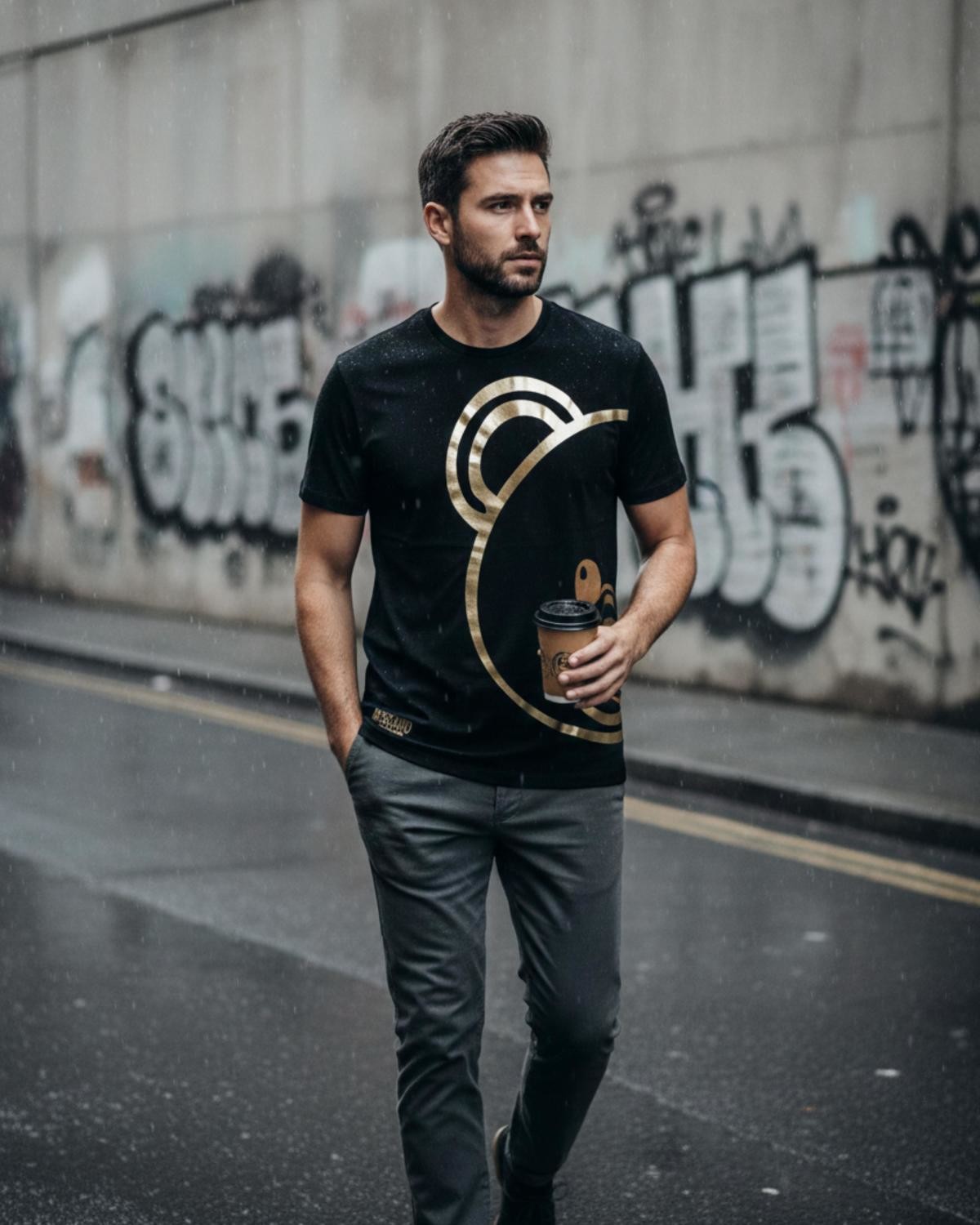 MOSCHINO-滿版印花LOGO 黑色T恤