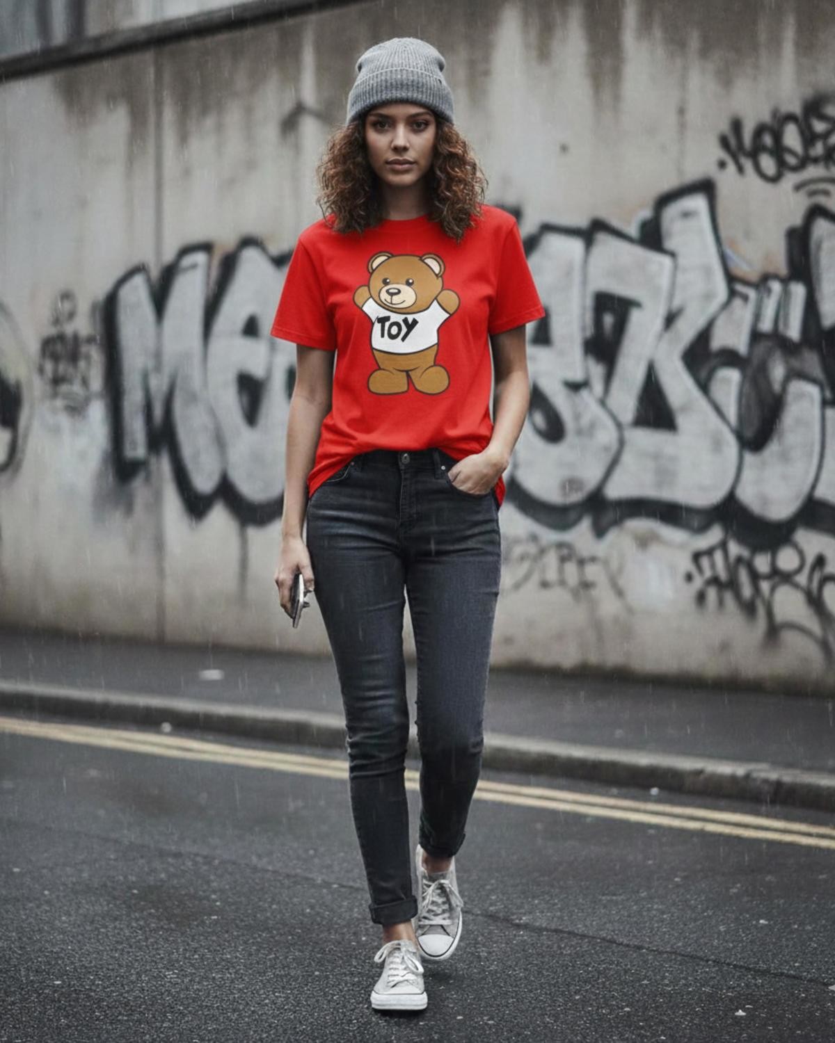 MOSCHINO-TOY泰迪熊LOGO紅色T恤